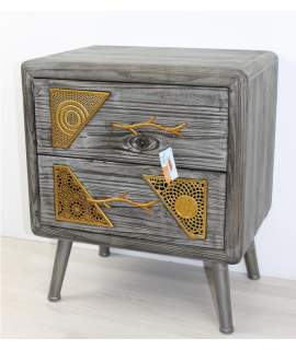 Mesita 2 Cajones Rustica Decoracion Metal Oro Serie Atrada