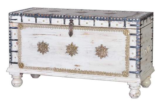 Baul Blanco Decape Madera Mango Decoracion Bronce oro Adeny