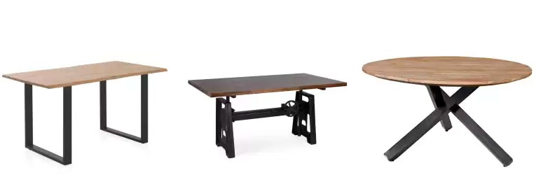 Nuestras mesas están fabricadas con maderas seleccionadas como el roble, el pino y la acacia, tratadas para resaltar sus vetas naturales y garantizar su durabilidad. Las estructuras metálicas, hechas de acero o hierro forjado, proporcionan una base robusta y resistente, asegurando que tu mesa se mantenga en perfectas condiciones durante años.