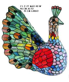 Pavo sentado cristales de Tiffany. La combinación de diferentes colores en los cristales de tiffany a si como la estructuración de las piezas hacen únicas este tipo de lámparas que son perfectamente adaptables a cualquier estancia además tiene una colocación rápida y senci...