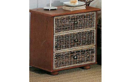 Mesilla dormitorio con 3 cajones de abacá. Mesita de noche para el dormitorio serie Argin con 3 cajones, se fabrica con armazón en madera laminada de embero, el frontal de cajones se teje a mano con abacá natural, acabado fibras naturales, Enlace toda la colección Argin