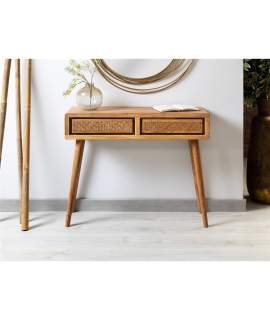 Estas consolas son ideales para colocarse en entradas, pasillos y salones. Su diseño versátil y elegante les permite integrarse armoniosamente en diferentes estilos decorativos, proporcionando un toque de naturalidad y funcionalidad al espacio.