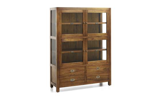 Crear cuentaAlacena vitrina salón estilo Colonial. Vitrina salón colonial con 4 cajones en la parte inferior y 4 puertas acristaladas con estantes interiores , se fabrica en madera de mindi acabado avellana nogal claro, tiradores metálicos color oro mate bronce. ENLACE TODA LA COLECCIÓN COLONIAL STAR